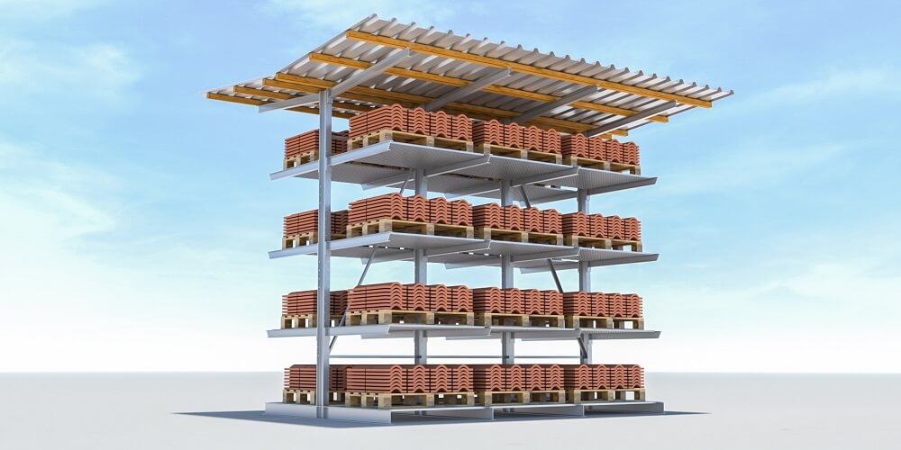 Kragarmregal doppelseitig mit Dach und Gitterroste einfach und schnell anfragen!